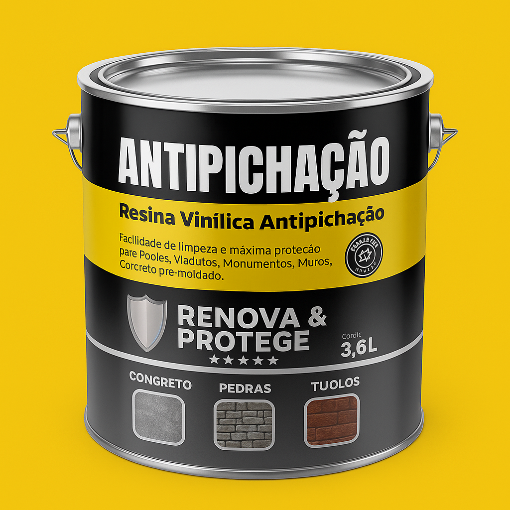 Antipichação CUMC é uma resina de revestimento transparente, desenvolvida pela CUCMC Química como alternativa fácil para proteção sobre Monumentos, Pontes e Viadutos, demais substratos como, alvenaria, concreto, revestido, pedras e tijolos e revestimentos pré-existentes como superfícies já pintadas, texturizadas ou grafitadas. *Usos:* Ideal para fachadas pintadas ou não, de concreto aparente, alvenaria, pedras decorativas, entre outros. Recomendado para proteção de monumentos, muros e fachadas expostas.
